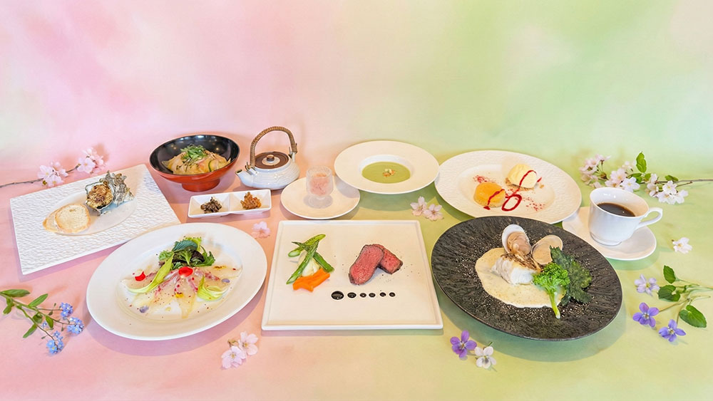 旬の桜鯛と、旨味の強い春の貝類を贅沢に使用しました。視覚と嗅覚で春の訪れを感じられるお料理です。