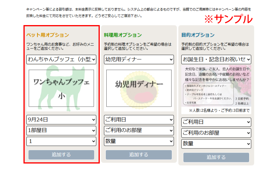 ご宿泊のプランにお好きな単品オプションを追加することができます。